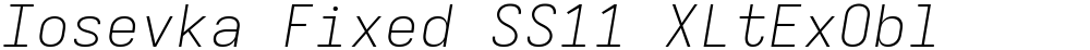 | 字体名称 | Iosevka Fixed SS11 XLtExObl |